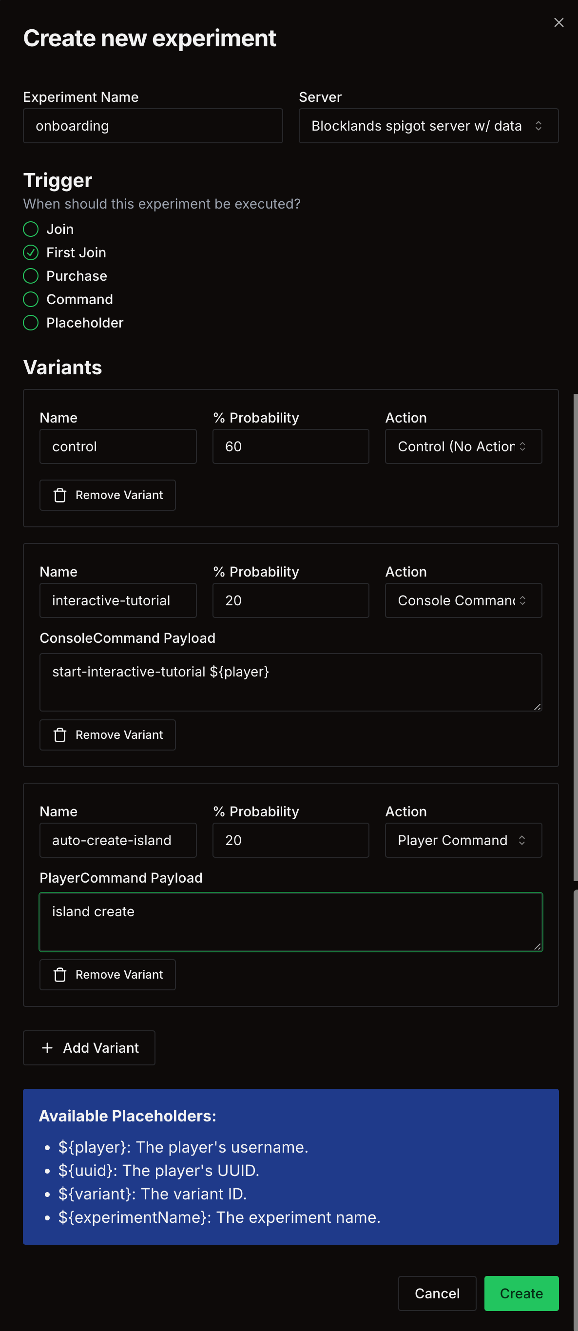 - The A/B test will be triggered for any player that joins for the first time on your main server