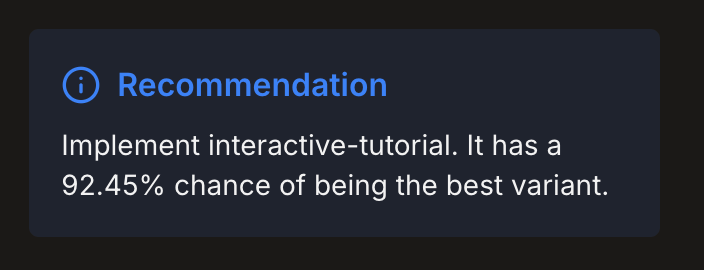 Since there is a clear winner variant and we have enough data, MCMetrics will give you a simple recommendation: